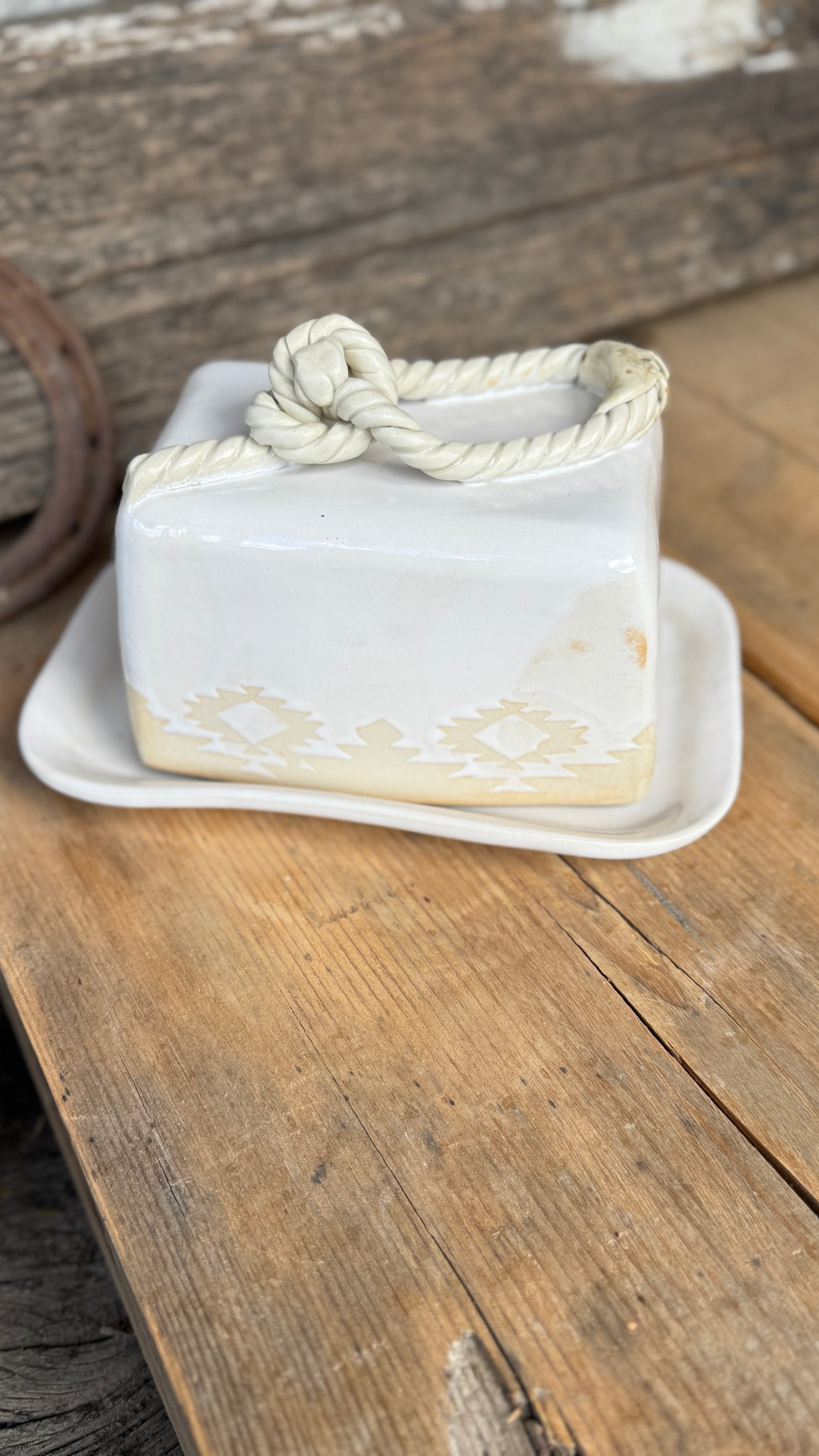 Bold, rustic charm Butter Dish fits a full Canadian 1lbs of butter. Handcrafted with a beautifully textured finish, this piece is perfect for adding a touch of western style to your home while keeping your butter fresh and easily accessible. Designed to hold a full pound of Canadian butter, it’s both practical and eye-catching.