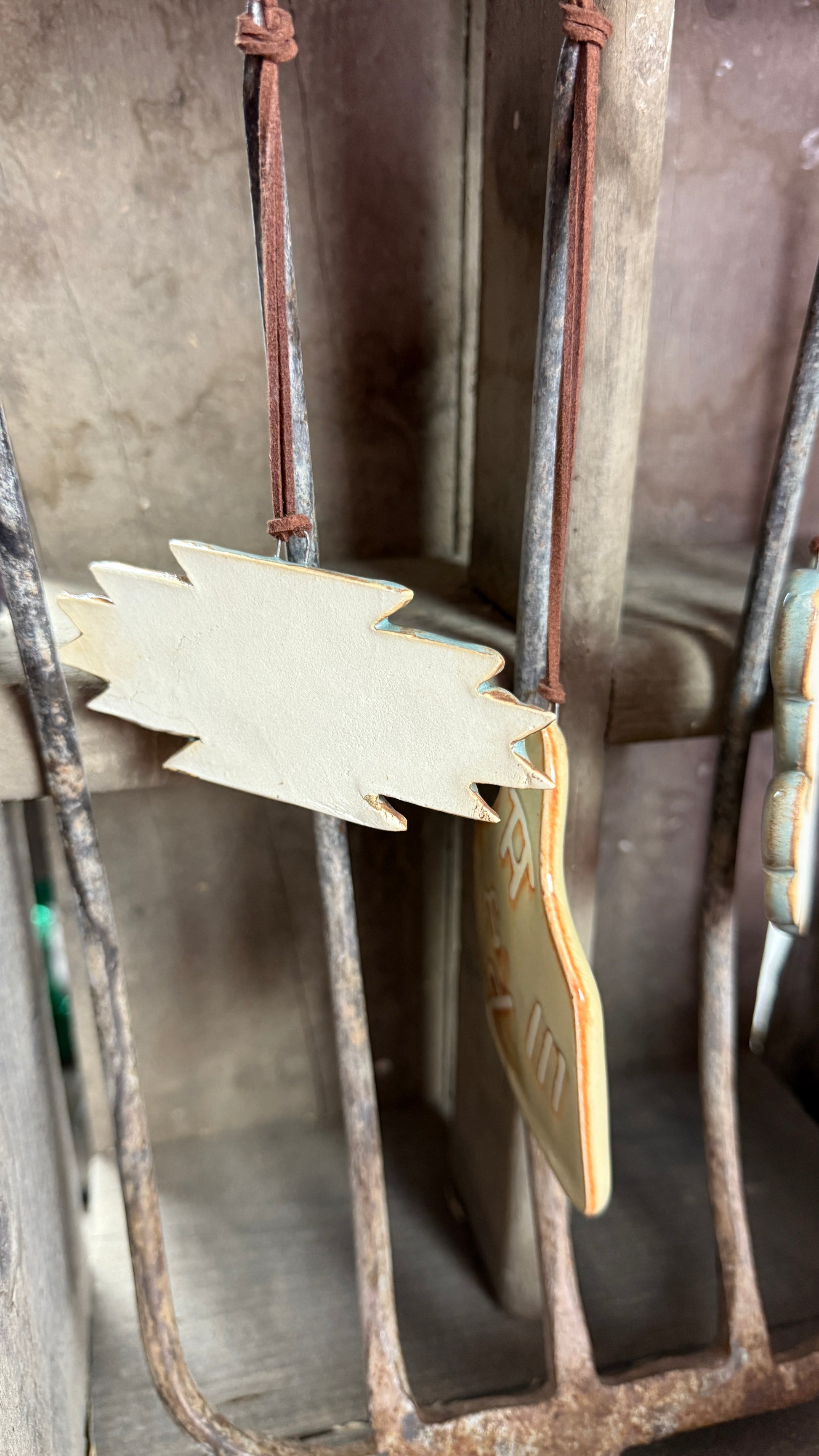 This handmade ceramic ornament trio brings classic western charm to your holiday décor. Created in my one woman Canadian studio from Canadian clay, each piece is unique and crafted in very limited quantities.