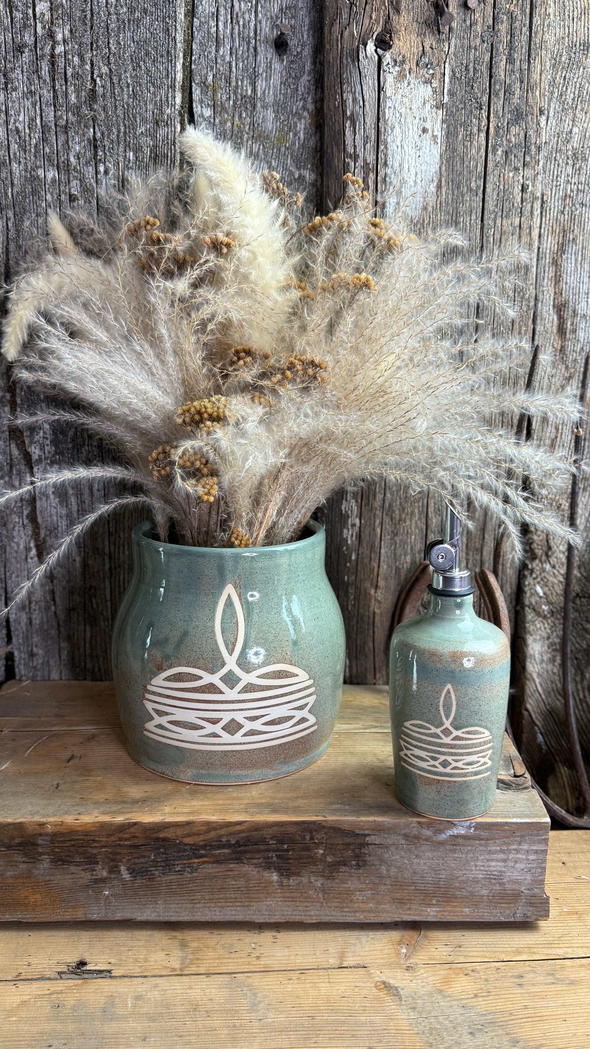 Kitchen Utensil Crock and oil bottle - Bootstitch Sagebrush