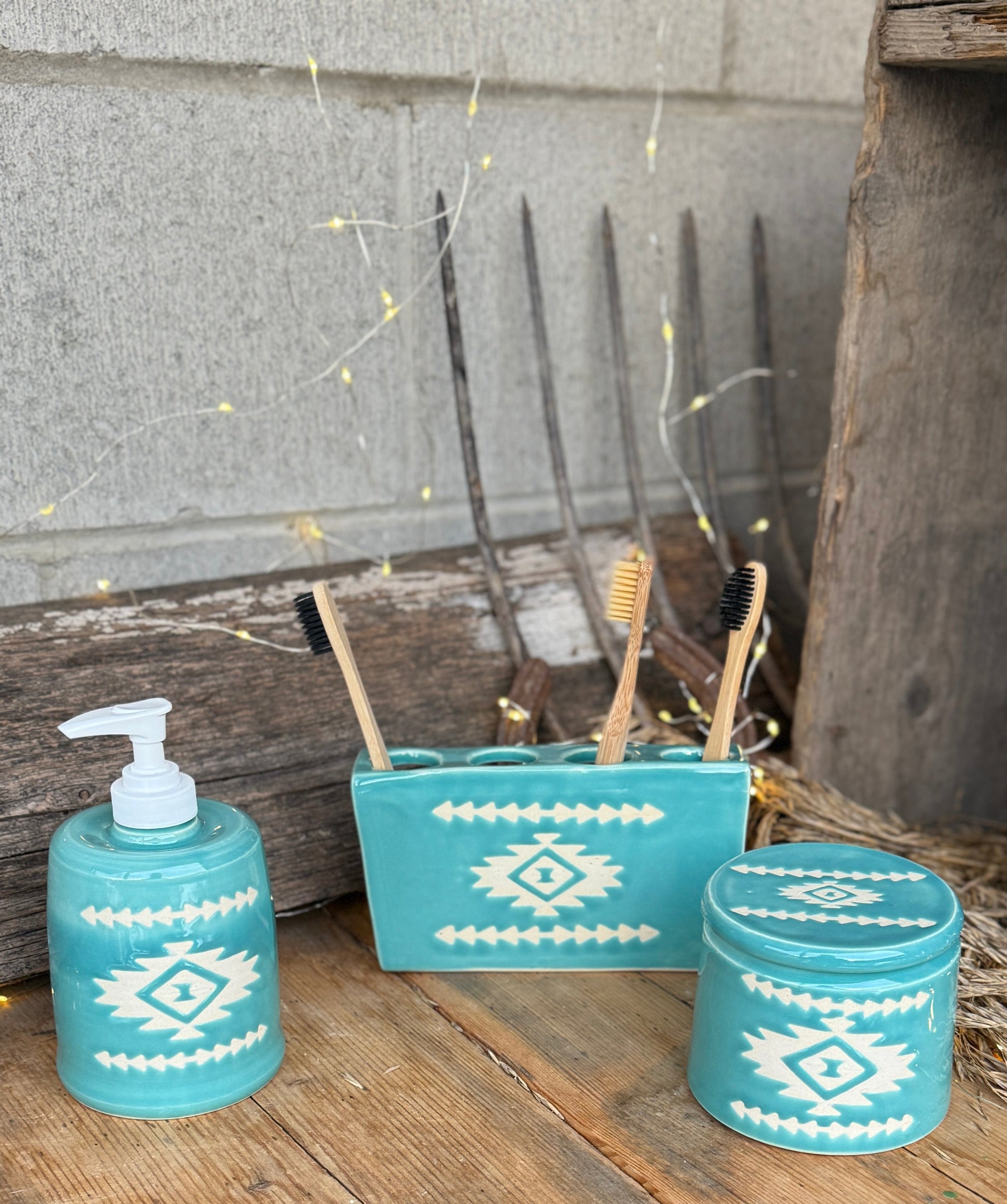 Sold as a complete set, these pieces transform your bathroom counter into a curated, calming space with rustic southwestern style. Handmade with care, each item is unique—just like your home.