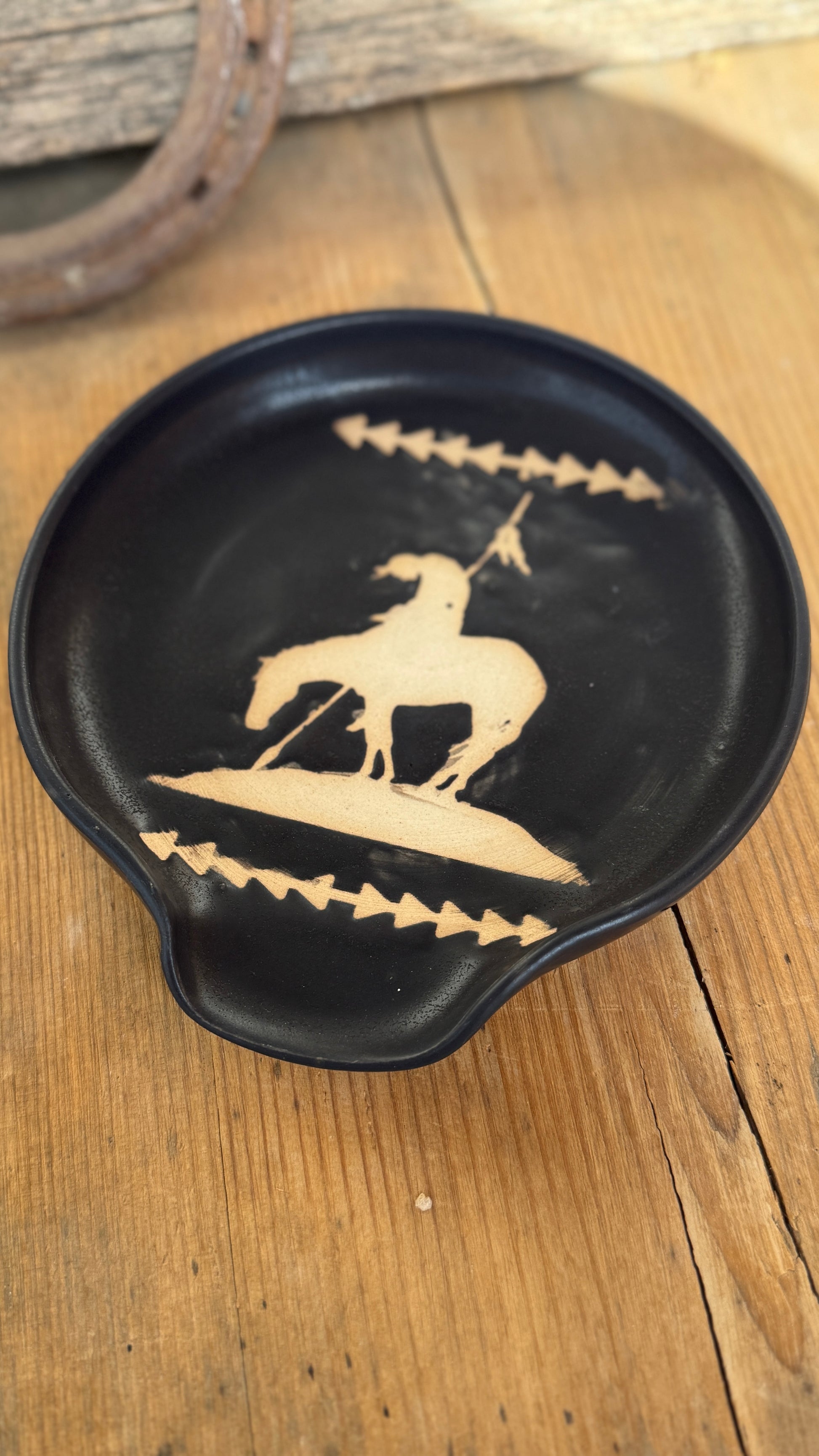 Keep your stovetop clean and your counters tidy with this handmade spoon rest, finished in a distinctive Southwestern design. Practical, beautiful, and one-of-a-kind, it’s the perfect piece of functional art for everyday use.